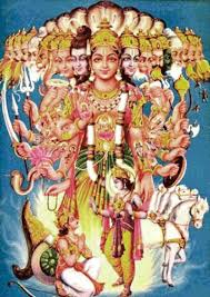 luz, la cara angelical, acompañado de Arjuna (en el Mahabharata). En el